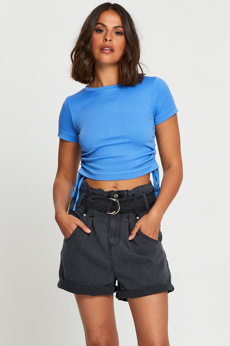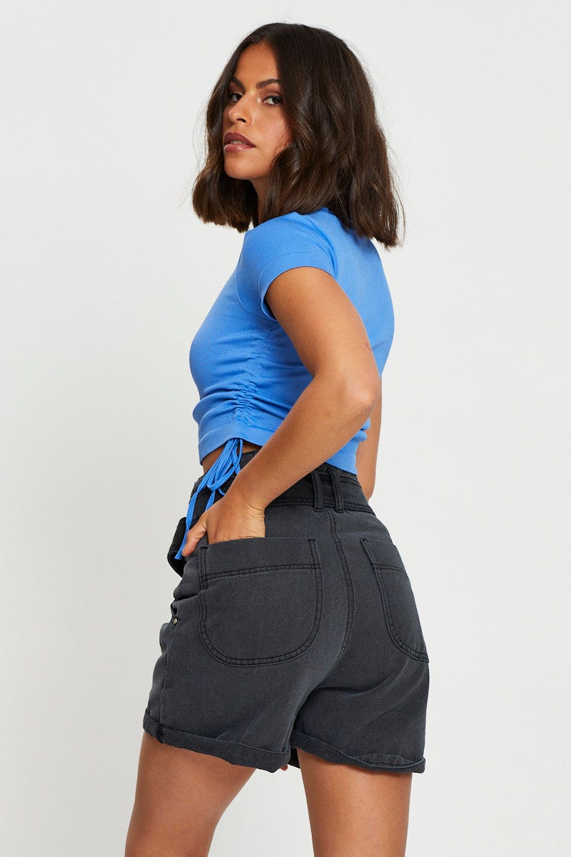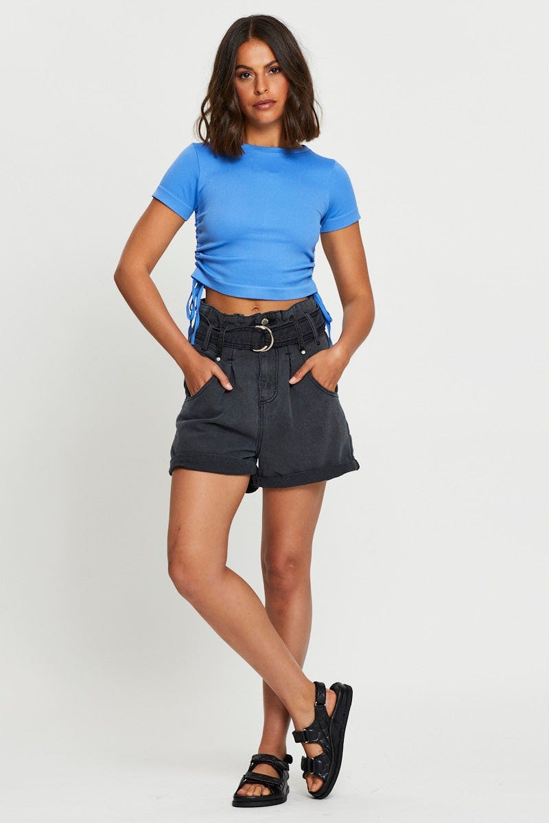 Be the first to review “Black Belted Denim Shorts High Rise”
